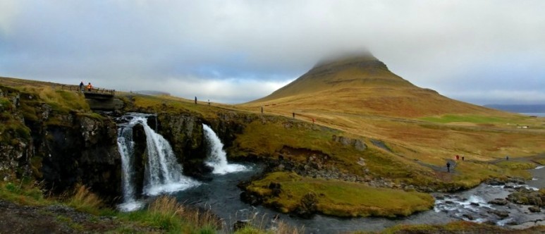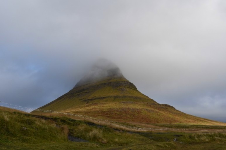 이 산의 이름은 키르큐펠(Kirkjufell).10월에 방문했던 키르큐펠, 날이 흐렸던터라 산 꼭대기에 구름이 잔뜩 껴 있었다.