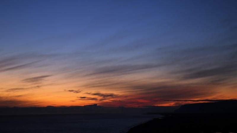 지평선 부근 하늘은 처음 보았을 때보다 더 붉게 타오르고 있었다. 해가 떠나간 하늘은 짙푸른 색으로 물들어가고 있었다.