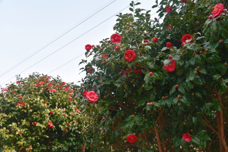 해수관음상 주변 동백꽃은 절정을 맞이한 상태였다.초록색 이파리가 싱그러운 나무마다 동백꽃들이 가득 매달려 있었다.