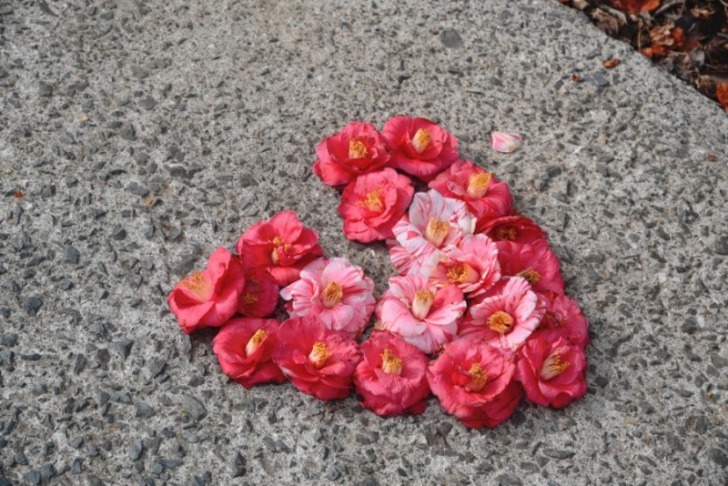 길가에 꽃잎들이 많이 떨어져 있었는데 붉은 카펫을 깔아 놓은 것처럼 보였다.
