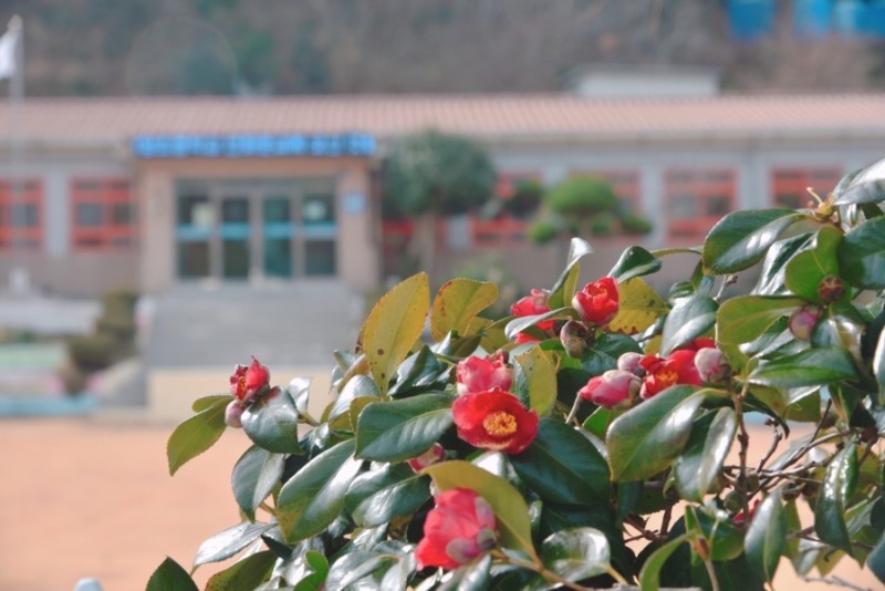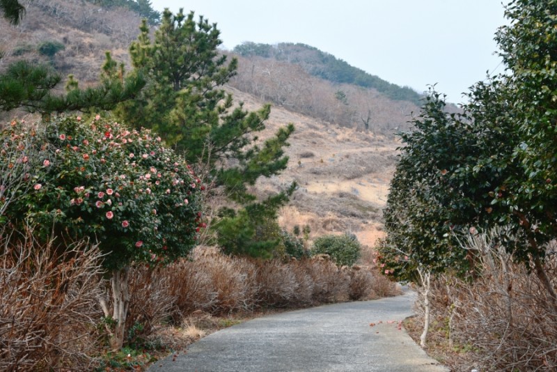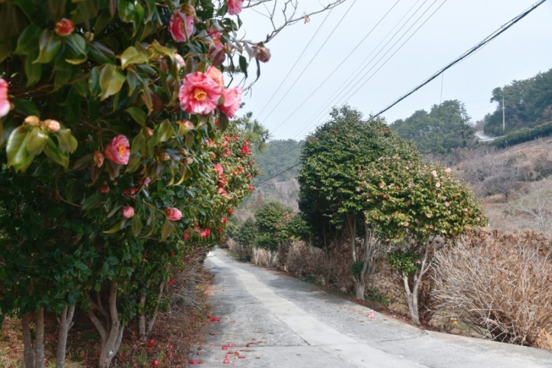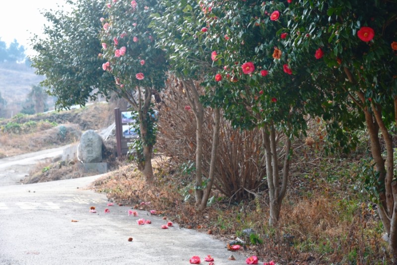 마을에 하나 뿐인 작은 학교를 지나며 드디어 붉은 동백꽃을 만나게 되었다.그리고 연화사 가는 길에도 동백나무들이 참 많았다.