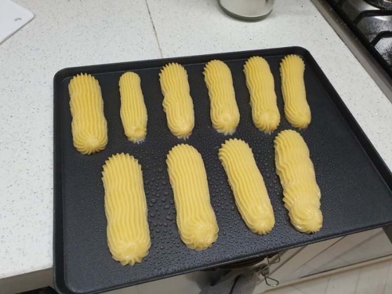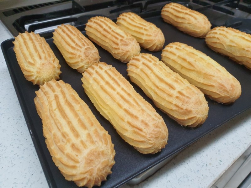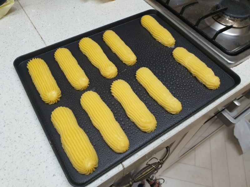 이 첫번째 시도의 대실패 이후, 에클레어 모양깍지의 중요성을 느끼고 바로 구매하였다.