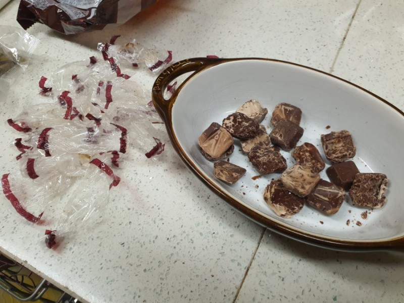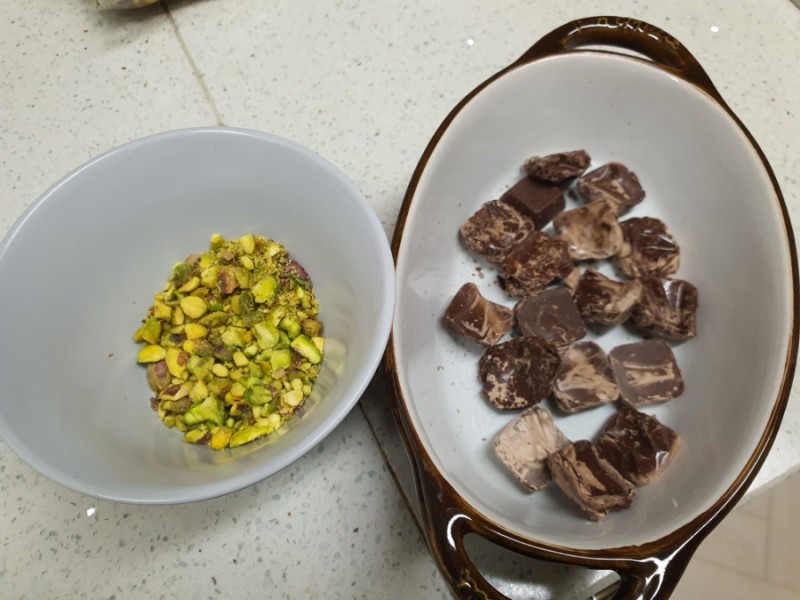 ABC초콜렛은 전자렌지에 30초씩 2회 나눠 돌려주었고, 피스타치오는 부숴트려놓았다.