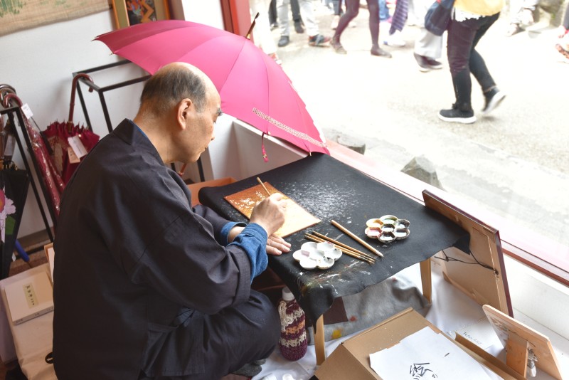 길을 걷다가 어느 할아버지가 금빛 천 위에 그림을 그리고 있는 모습을 보게 되었다. 그 모습을 한참 지켜보다가, 그림 한 점을 사왔다.