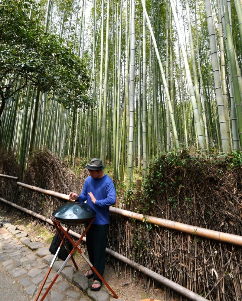 파란 옷을 입은 연주자는 둥그런 쇳판을 두드리며 연주를 하고 있었다. 핸드팬이라는 악기였는데 소리가 아주 청아하고 맑았다. 그 소리가 지금 우리가 서있는 대나무 숲과 무척 잘 어울렸다.