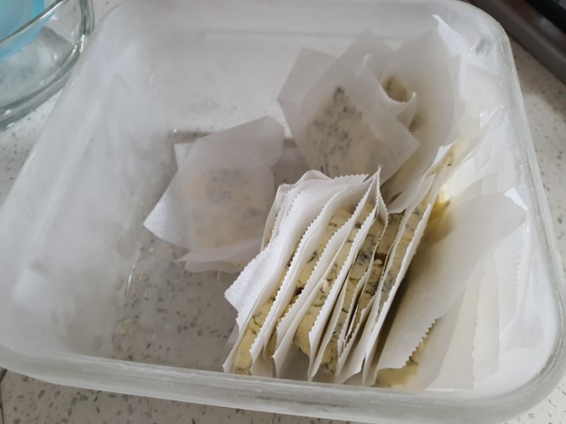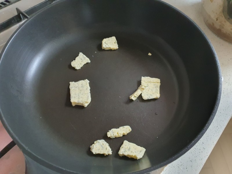 만들어놓은 냉동 레몬딜버터 1개당 빵 1개 굽는다 생각하고 후라이팬에 앞뒤 약불로 구워주었다.