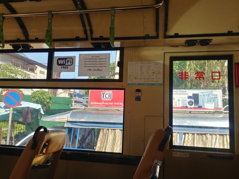 알고보니 이 버스는 비엔티엔 공항에서 시내로 오는 중이었다. 버스는 종점까지 갔다가 다시 공항으로 가니 그냥 버스에 타고 있으면 된다고 했다. 이제 상황이 좀 파악되어 안심하고 돈을 내려고 하니, 검표원은 종점에서 공항으로 갈 때 그 때 요금을 내면 된다면서 편히 있으라 말했다.