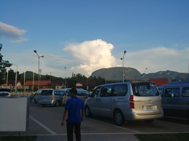 비엔티엔도 낯설었는데 루앙프라방은 더 낯설었다. 넓은 부지 위에는 오로지 공항 건물 뿐이었다. 시야를 가리는 건물이 없어 멀리 지평선이 보일 듯 했다. 땅에서부터 솟아오른 것 같은 커다란 구름도 인상적이었다.
