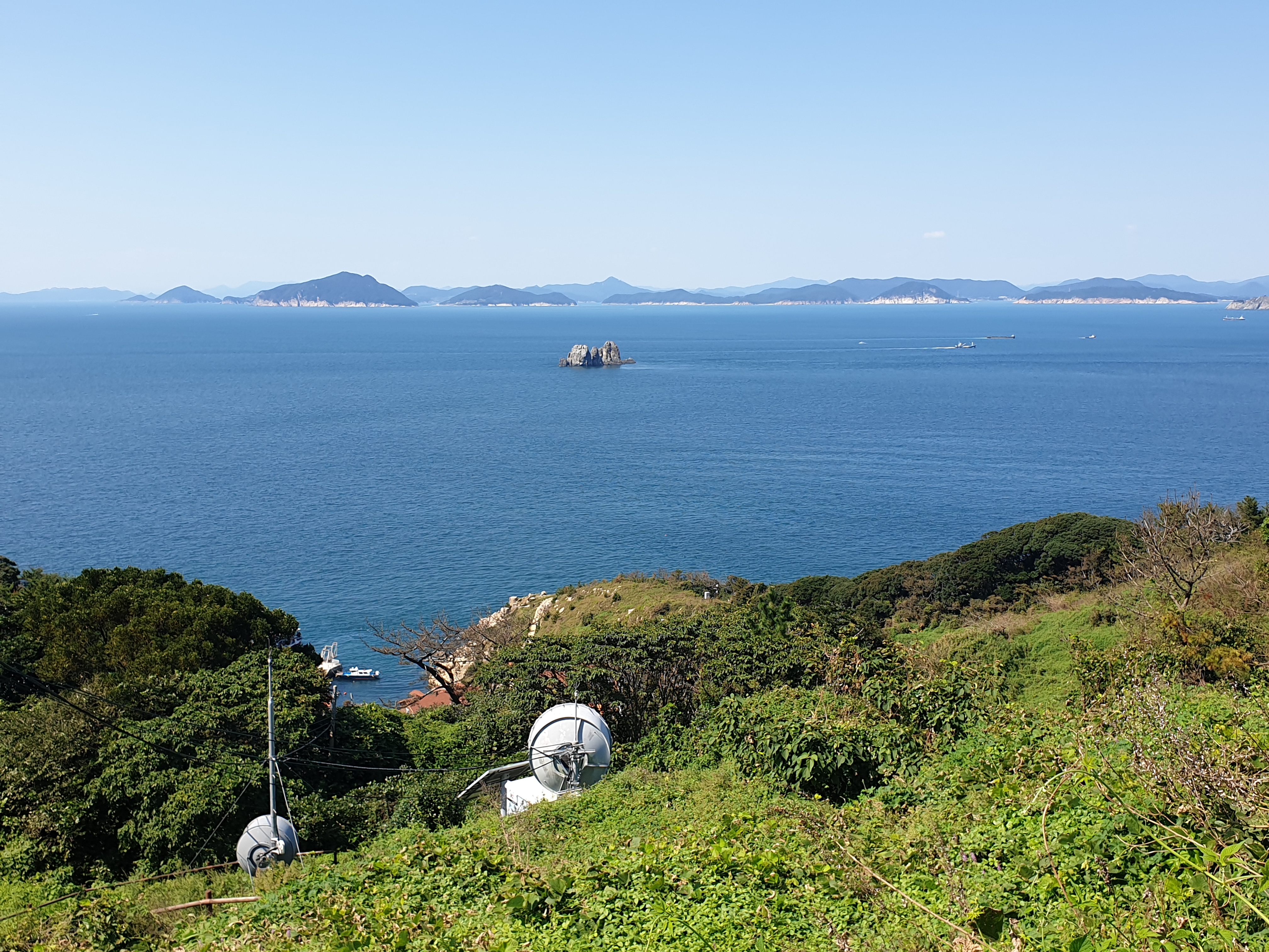 오르막 길을 따라 걷다가 문득 뒤를 돌아보면 푸른 바다와 섬들이 내려다 보였다.점점 멀어지는 바다를 뒤로하고 나무들이 우거진 등산로에 진입했다.