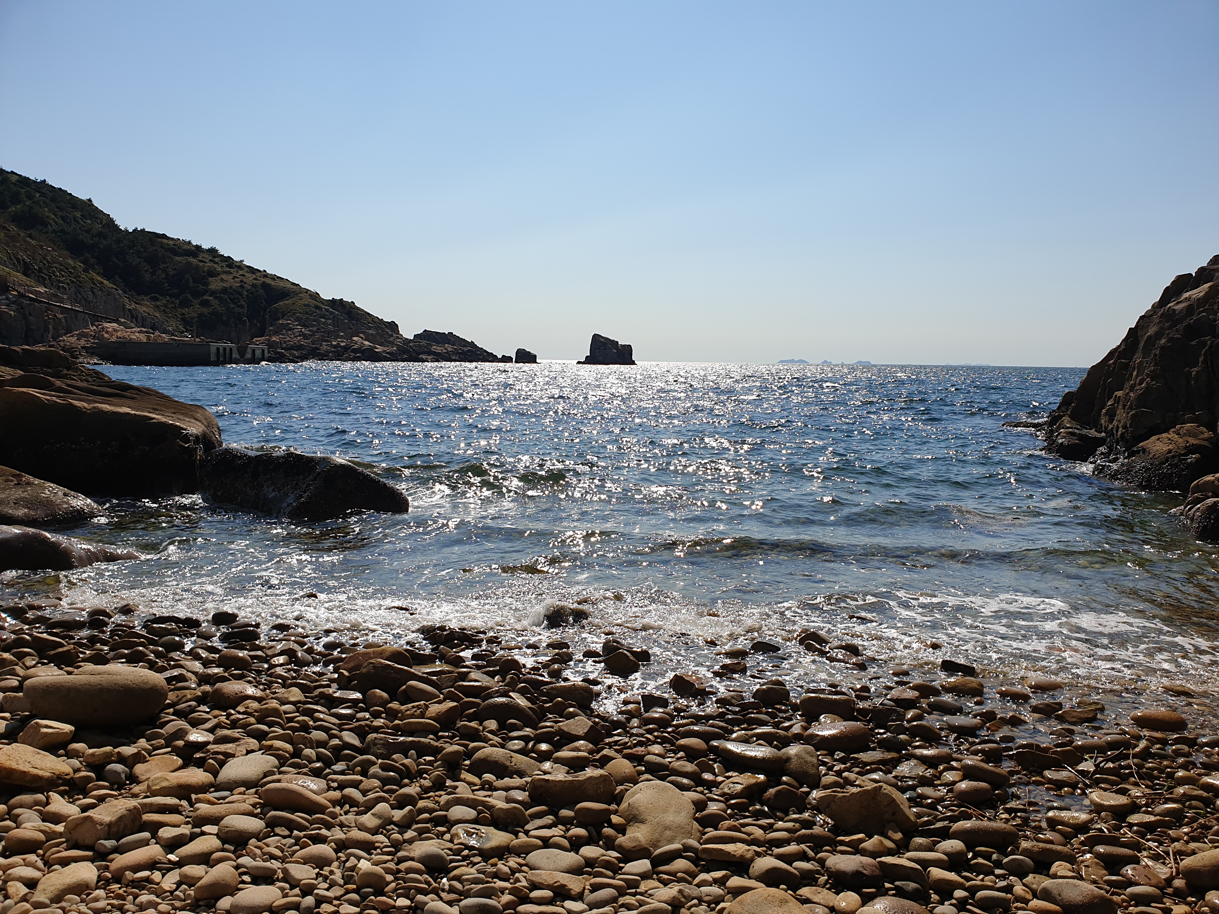 가파른 계단이 나타났다.그 끝에 다다르니 자갈들이 가득한 해변이 나타났다.
