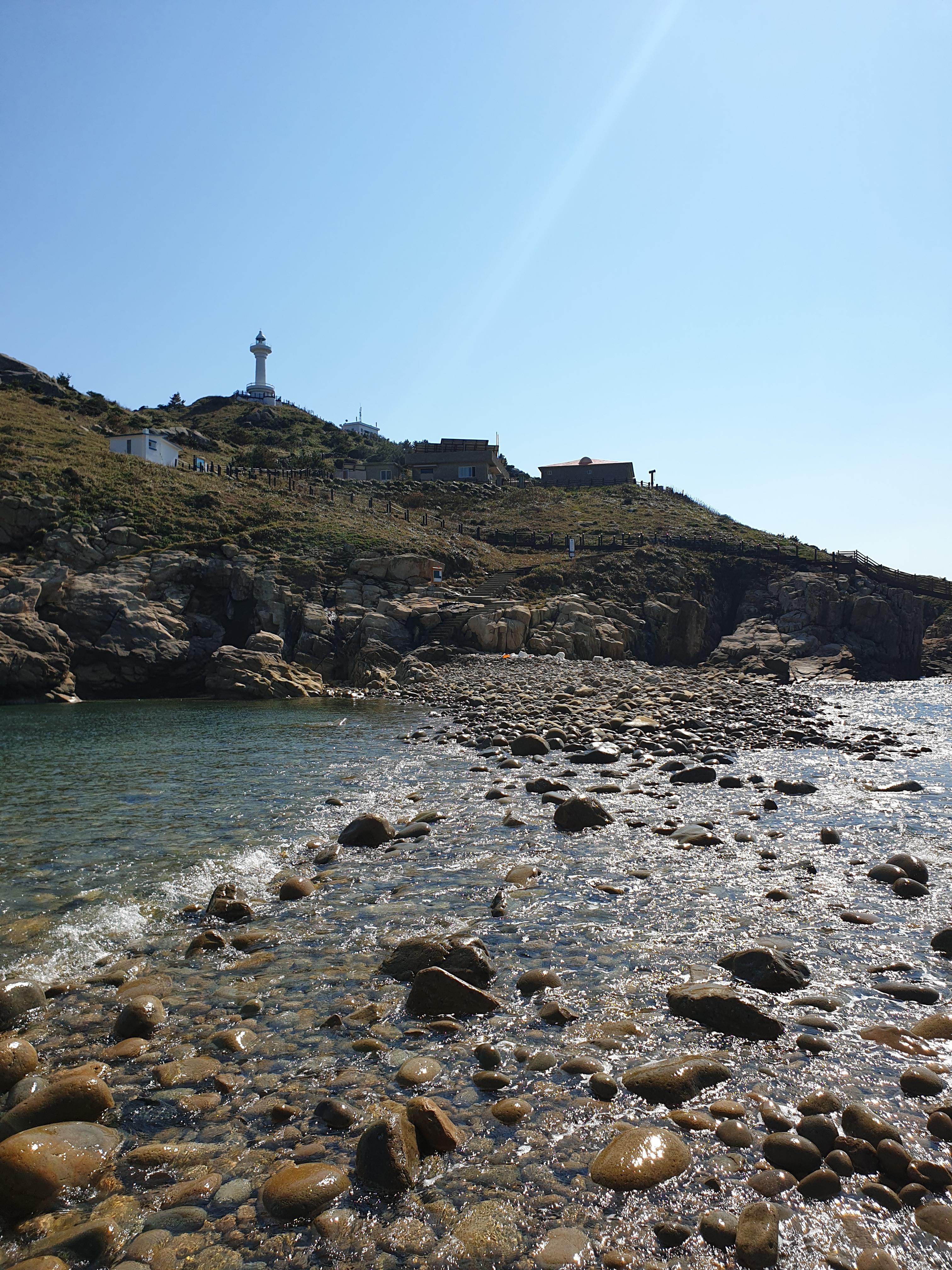 썰물 때가 되면 자갈 길이 드러나 걸어서 등대섬으로 건너갈 수 있다.우리가 도착했을 때는 아직 물이 덜 빠진 상태여서 자갈길 위로 바닷물이 출렁거렸다.