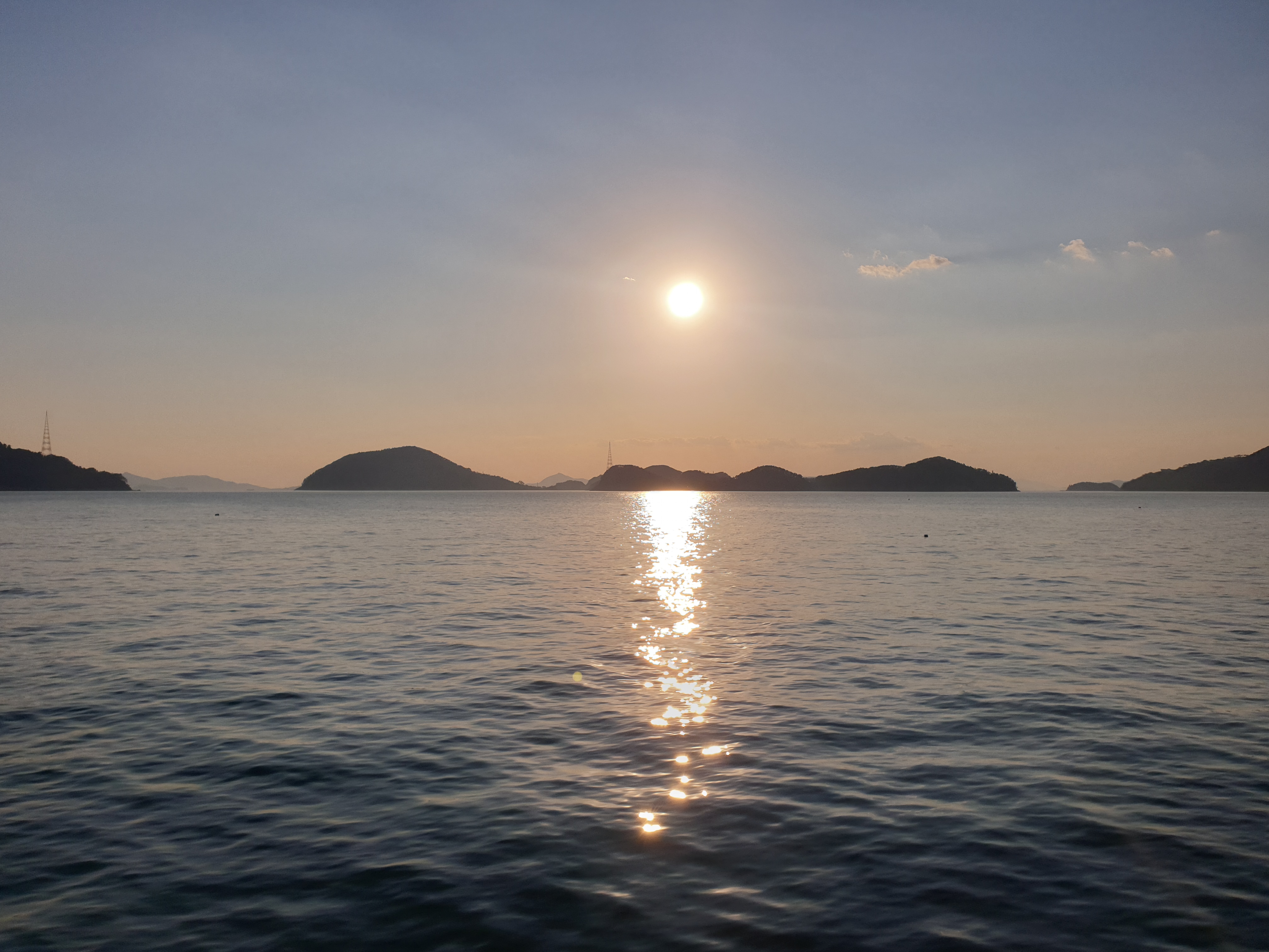오후 4시 30분, 통영항으로 돌아가는 배에 올라 탔다.둥그런 해가 이제 수평선과 가까워졌다.