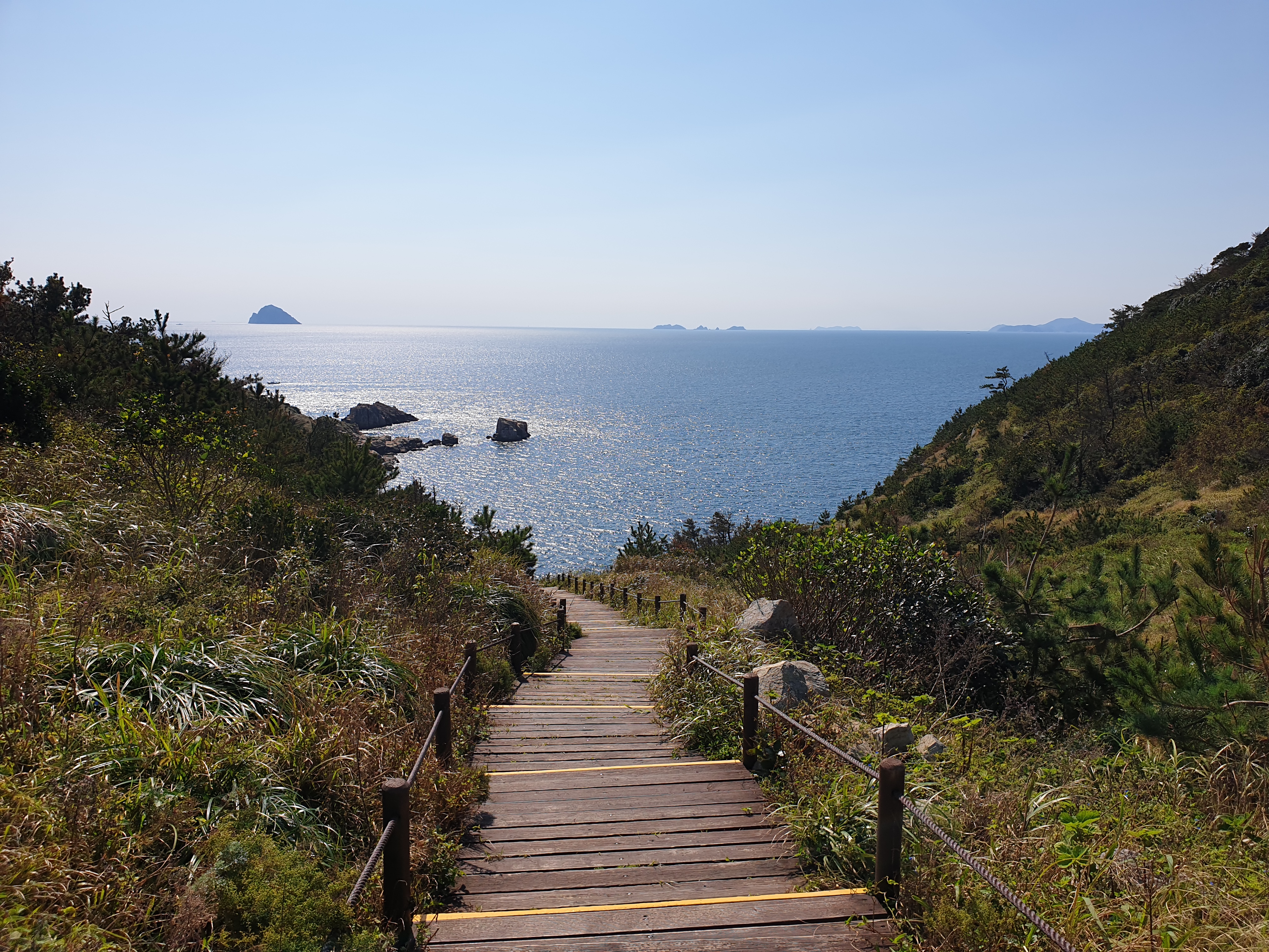 끝이 바다에 닿을 것만 같은 내리막 계단을 만났다.반짝거리는 바다를 마주보며 계단을 내려가는 내내 기분이 너무 좋았다.