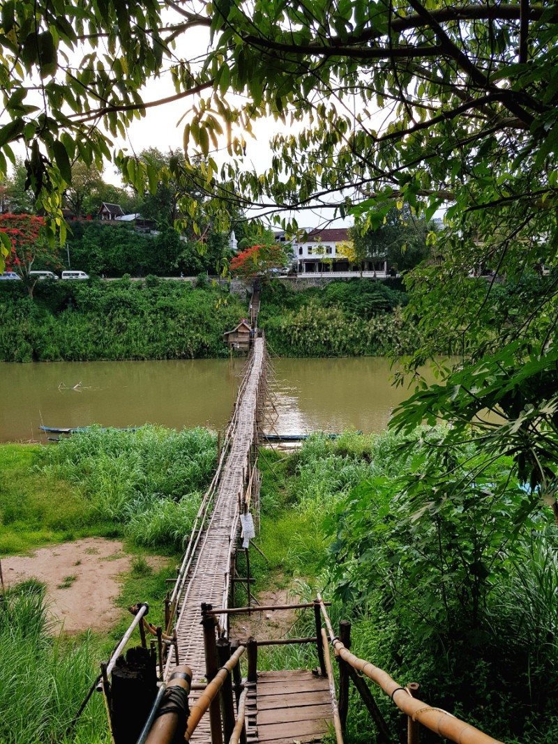 다리를 다시 건너와서 방금 전 우리가 걸었던 길들을 돌아 보았다. 기다란 다리를 따라서 강을 건넜다. 남칸 강은 숙소에서도 하염없이 보았고, 다리 위로 건너보기도 했으니 루앙프라방 여행에서 참 의미가 깊은 곳이 되었다.