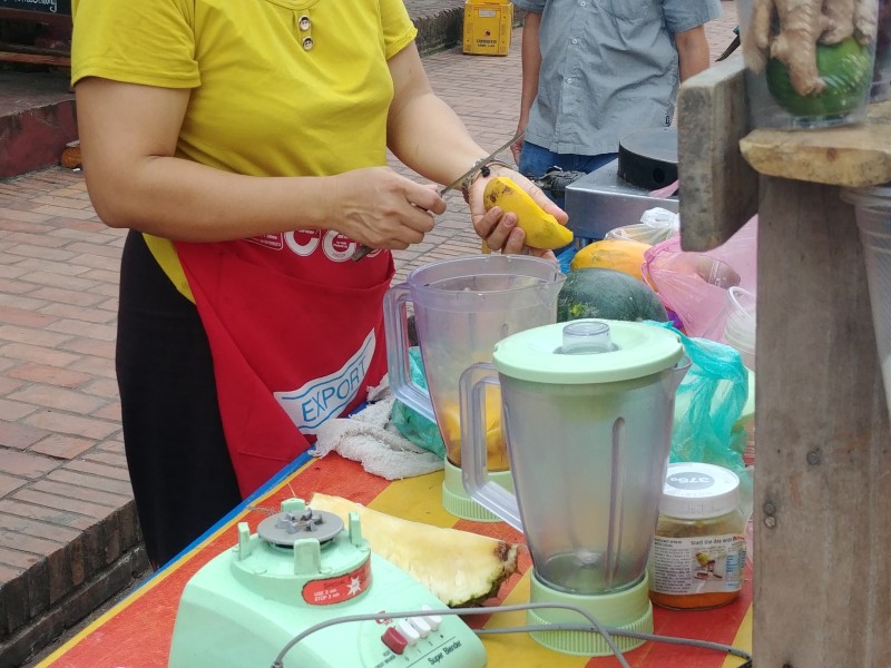 길을 걷다가 과일 쥬스를 파는 노점을 발견해서 맛난 망고 쥬스를 사먹었다. 눈앞에서 망고를 슥슥 잘라 손질하고 믹서기에 넣어 휙휙 갈아 주셨다. 생망고 쥬스라니, 한국에서는 꿈도 꿀 수 없던 메뉴였다.
