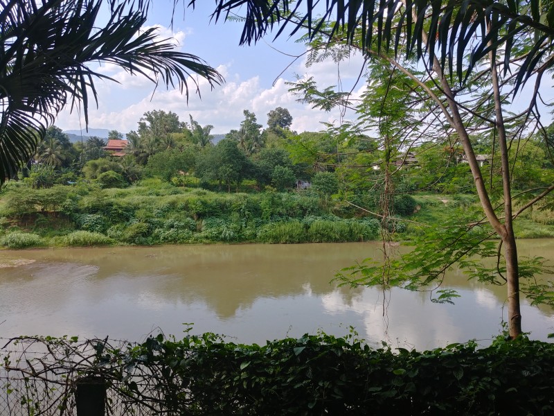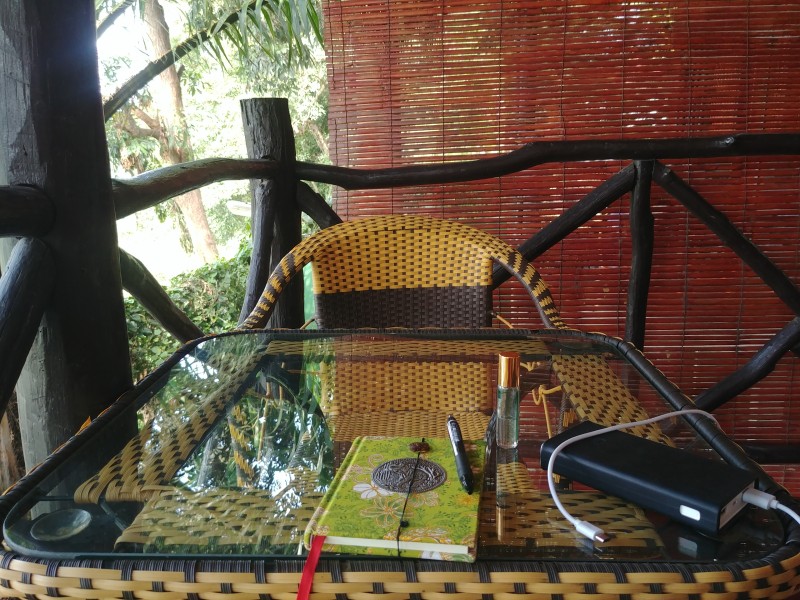 아름다운 남칸 강을 바라보며 멍 때리기에 돌입했다. 푸르른 하늘이 강에 그대로 비쳐서 아른아른거렸다. 낯선 풍경과 낯선 공기가 좋았다. 잠깐 테이블에 앉아서 일기를 끄적였다. 라오스 여행 때 쓴 일기는 방콕 여행 때 사온 코끼리 장식이 달린 노트였다.