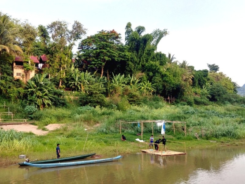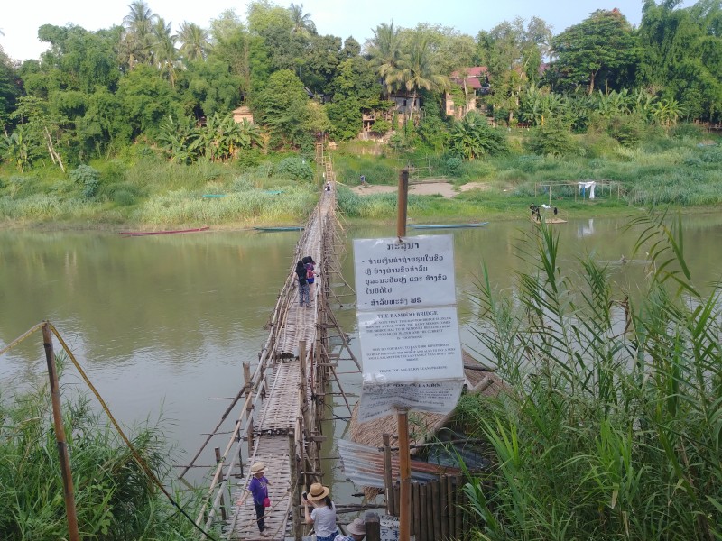 그러다가 마주치게 된 대나무 다리. 구글 맵을 보니 'Bamboo Bridge Nam Khan river'라고 표시가 되어 있었다. 남칸강은 우리가 머물고 있던 숙소 통베이 게스트하우스 테라스에서 보이던 가잉었는데, 그 강을 건너는 대나무 다리라니! 건너보고 싶었다.