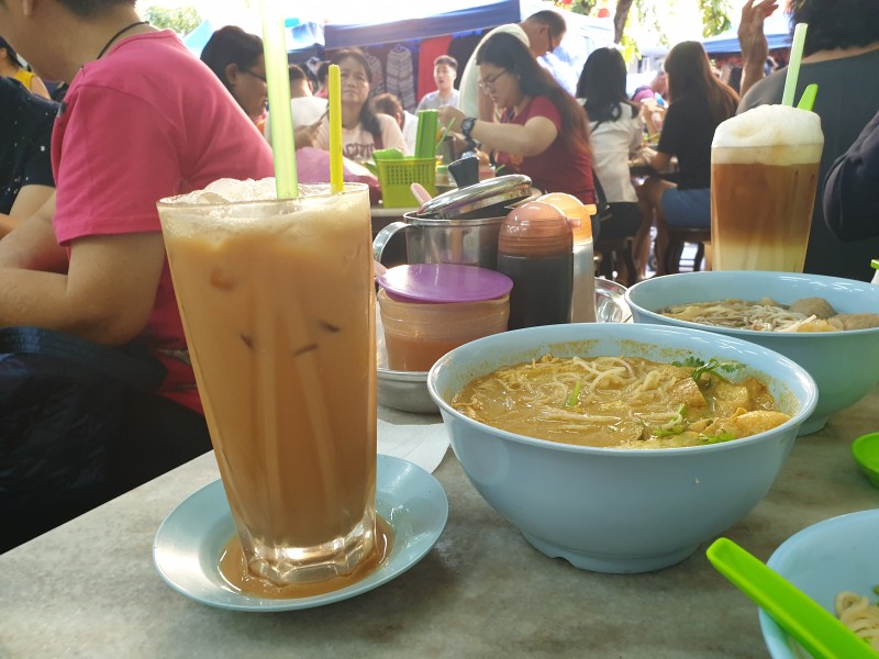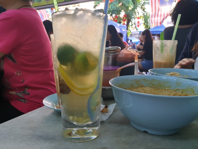 Yee Fung 락사 새우랑 소고기를 하나씩 주문했다.코타키나발루 와서 락사를 참 많이도 먹는구나 😁 그리고 '테 타릭'이라 불리는 밀크티 같은 시원한 음료와 시큼한 깔라만시가 든 음료도 주문했다.
