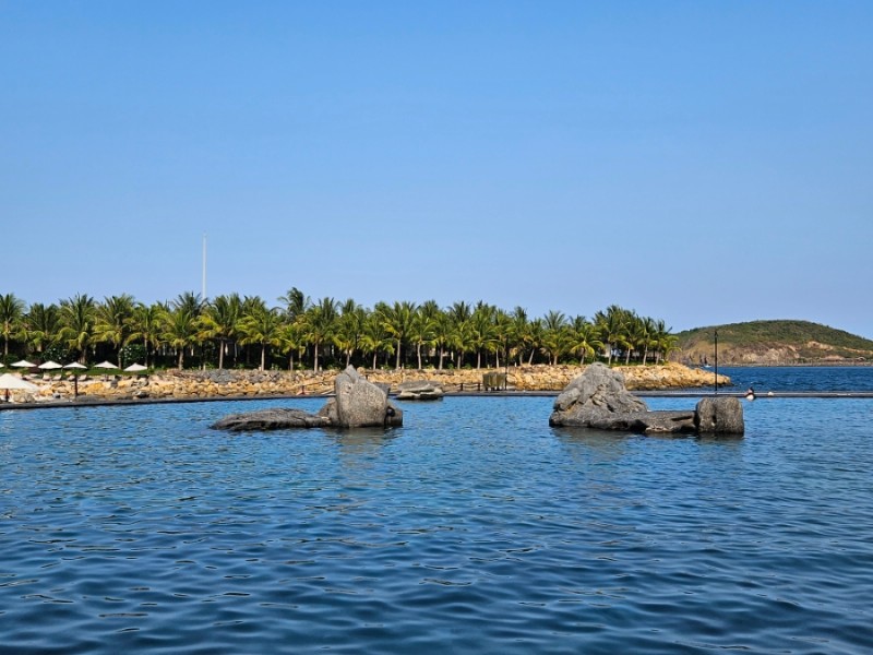 커다란 수영장 두 개를 지나서 드디어 프라이빗 해변에 도착했다. 한적하면서도 티없이 맑은 아름다운 바다였다. 와, 바다를 마주하고 나니 정말 휴양지에 놀러온 기분이 제대로 났다.
