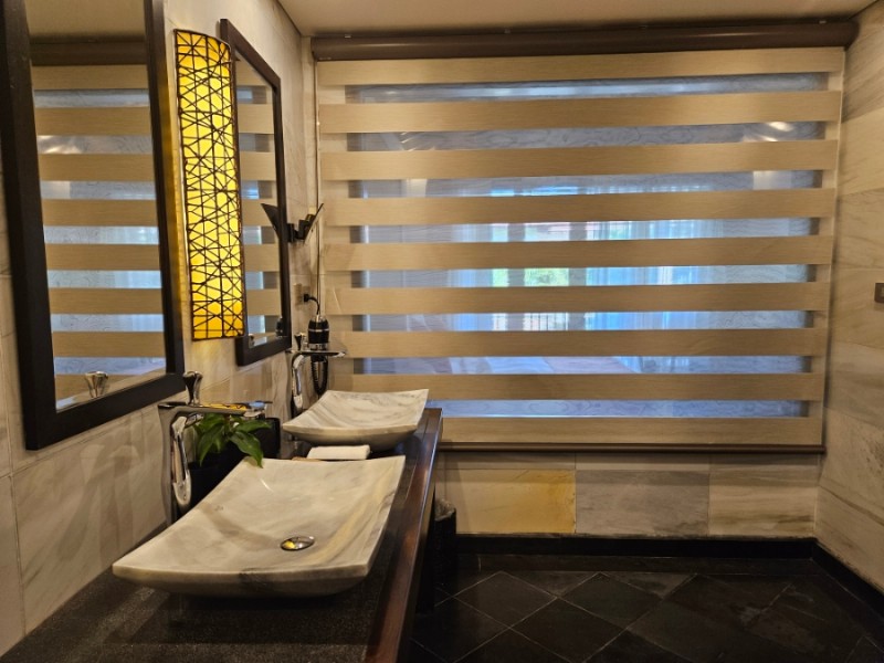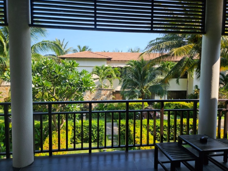 방에 들어서자 은은한 레몬그라스 향이 기분 좋게 느껴졌다. 넓은 방과 욕실, 그리고 자연 속에 있는 듯한 주변 조경과 아름다운 테라스까지. 로비에서 약간 먼 것만 빼고는 만족스러웠던 방이었다. 로비에서 멀긴해도 버기를 타고 다니면 되니까 괜찮았다.