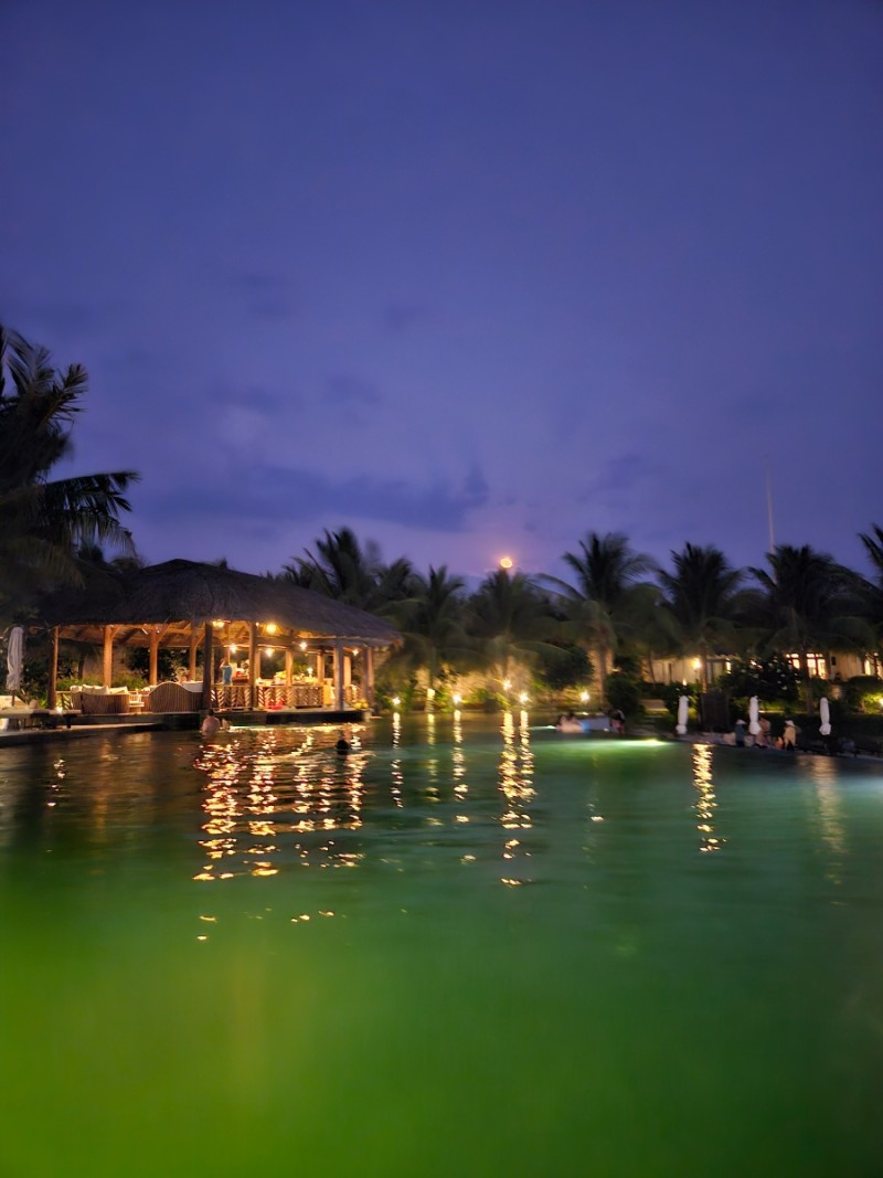 해가 저물고 하늘은 보랏빛으로 물들었다. 조명이 하나 둘 켜지기 시작한 수영장은 낮보다 더 아름다웠다. 물 위에 둥둥 떠서 조용히 밤하늘을 바라보고 한적한 수영장을 돌아다니다 보면 시간은 또 금방 흘러가버렸다.