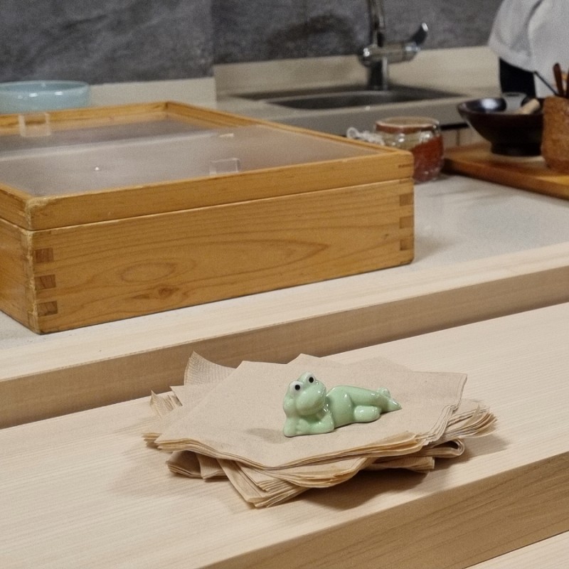 라쿠친 스시를 떠올려보면 귀여운 개구리랑 산티아고 조형물이 번뜩 생각났는데, 여전히 개구리들이 그대로 있었고 산티아고 조형물도 문 쪽에 그대로 있었지. 그리고 당연하지만 사장님도 그대로였다! 진짜 웃긴게, 이름도 몰라 성도 모르는 사이지만, 그리고 갑자기 떠올리려면 떠올리기도 힘든 객관적으로 모르는 사람의 얼굴이었지만 사장님을 보니까 '와, 라쿠친 스시 사장님이다'하고 번뜩 내 기억과 사장님 얼굴이 매칭이 되면서 너무 반가웠다.
