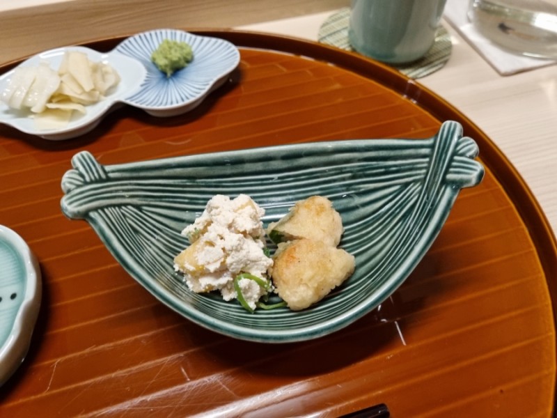 두부와 감이라니! 뭔가 특이한 조합이다. 두부와 감을 하루 같이 두어서 두부에도 감 향이 은은하게 베여 있었다. 고추 안에 새우를 넣은 튀김이었는데, 튀김이 무척 촉촉했고 새우 육즙이 퐝 튀어나와서 고소하니 정말 맛나게 먹었다.