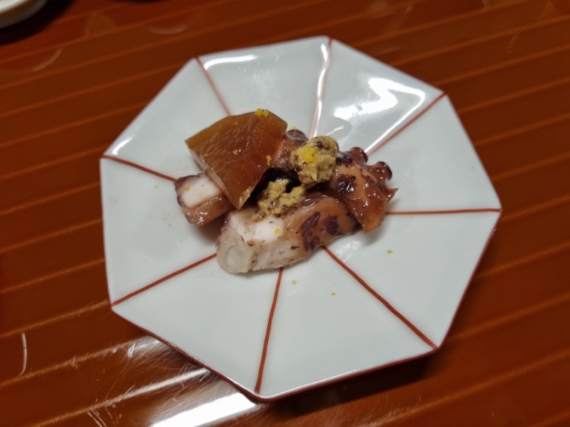 드디어 사시미가 나왔다. 참치도 아니고 삼치도 아닌 것이 기괴한듯 맛있었다. 양념이 살짝 되어 있었고, 위에 시소 잎이 뿌려져 있었는데 그 향이 좋았다. 생선 특유의 살짝 비릿한 향도 있었다.