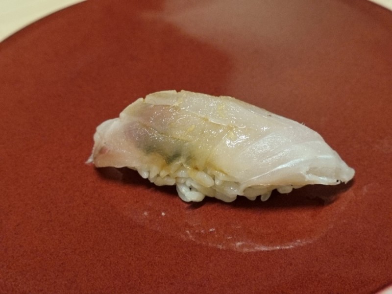 두툼한 광어 살 안에 잘게 썬 지느러미 살들과 시소, 와사비. 너무 고소하고 맛났다. 적당히 숙성되어서 식감도 좋았다.