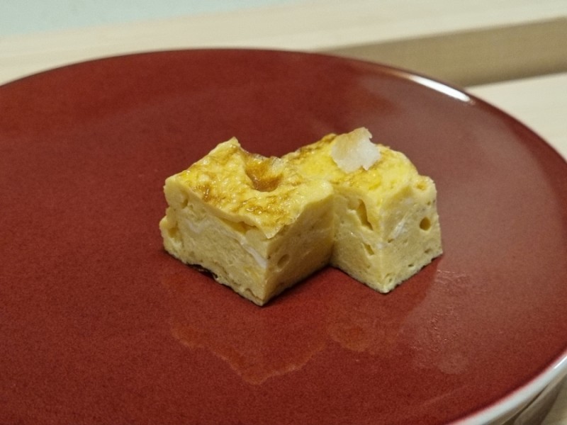 간 무가 살짝 올라가 있었고 와사비가 살짝, 계란이랑 먹으니 잘 어울리더라. 반을 씹어 먹으니 안에서 즙이 축 나왔다. 달달한 계란빵 느낌이랄까, 폭신폭신했다.