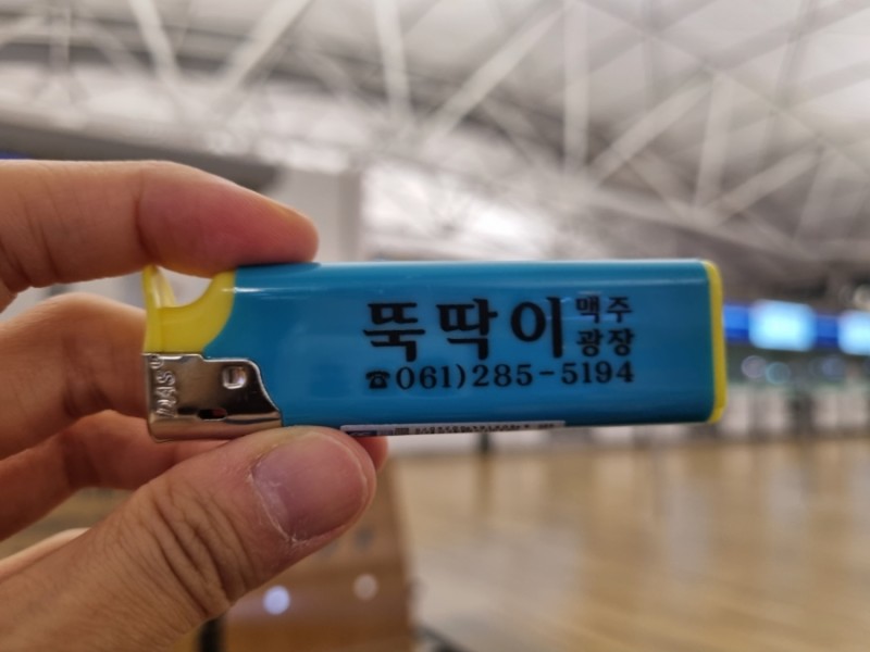 뚝딱이. 대체 어디서 들고 온 것인지 알 수 없는 이 라이터. 우리 목포 여행 갔을 때 전기 통닭구이 포장해오면서 하나 챙겨온 라이터였다.