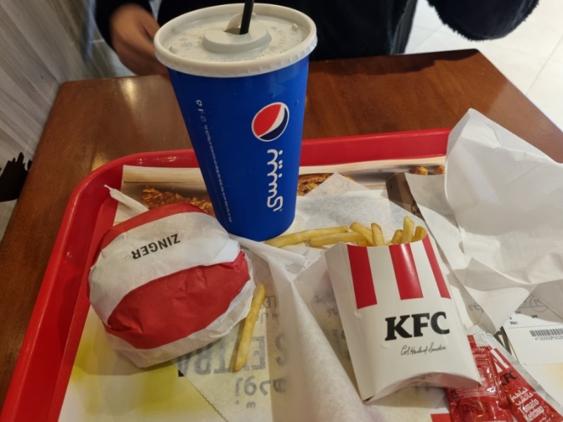 우리가 돈이 없는 건 아니었지만 왠지 라면을 2만원 넘게 주고는 먹지 못하겠더라. 뭔가 사치하는 기분이 들어서 그럴 수가 없었다. 그래서 우리가 찾은 곳은 KFC였다. 초라한 징거버거 세트 하나가 무려 만 오천원이었다. 아니 싸이버거 세트를 사도 이 가격은 안나올텐데, 으아아악!
