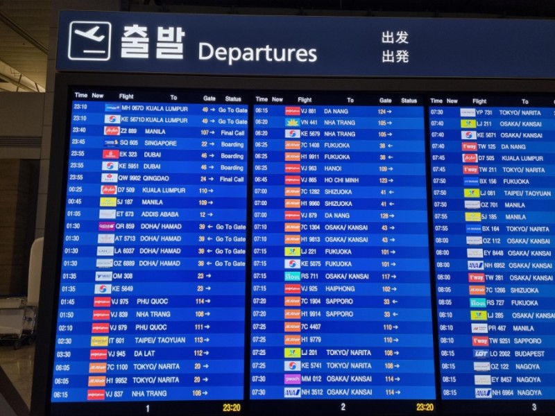 출발 안내판을 보면서 인천공항에서 갈 수 있는 곳들이 이렇게나 많구나 새삼 또 느꼈다. 지방에 살고 있는 우리로서는 저 수많은 나라들의 도시들이 그림의 떡 같았다. 예전에 부천 살 때는 인천공항이 코앞이라서 정말 편했는데, 지방에 사니까 이런 점은 참 불편하다.