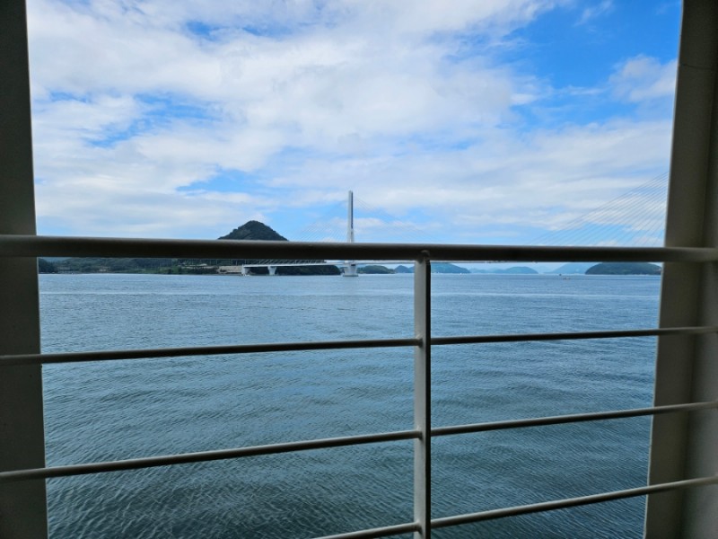 시간이 다 되어서 드디어 차에 올랐다. 운전자만 차에 탈 수 있어서 우는 차를 타고 배에 올랐고, 나는 따로 걸어서 배에 들어갔다. 비록 20여분일 뿐이지만 배를 타고 바다를 건너가는건 언제나 흥미로운 일이다. 섬들이 겹겹이 이어진 남해안의 풍경을 보며 가고 싶어서 바깥쪽 복도에 있던 벤치에 앉아서 갔다.