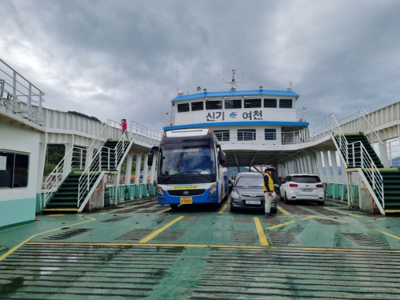 금오도에 가기 위해 여수에서 하룻밤 머물렀다. 이른 아침에 금오도에 가려고 했는데 생각보다 늦게 일어나서 서둘러 여수 돌산 신기항으로 향했다. 여수에서 금오도로 가는 배가 다니는 항구는 여럿 있는데, 우리는 그중에서도 가장 배차가 많고 시간도 적게 걸리는(20여분) 돌산 신기항에서 출발하는 배를 타고 금오도에 가기로 했다.