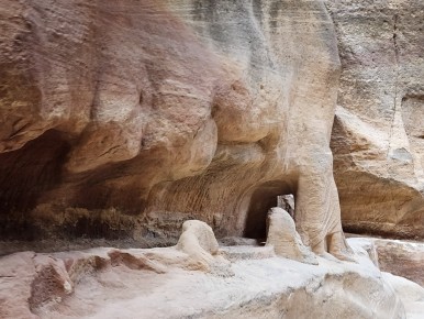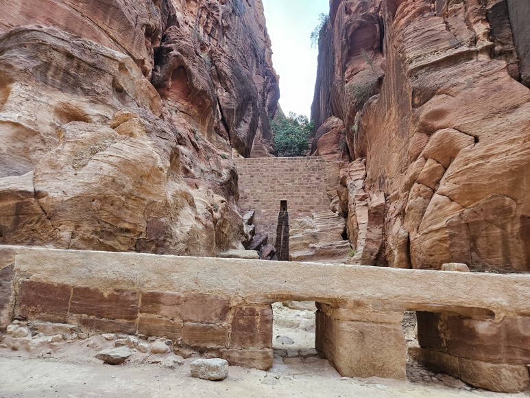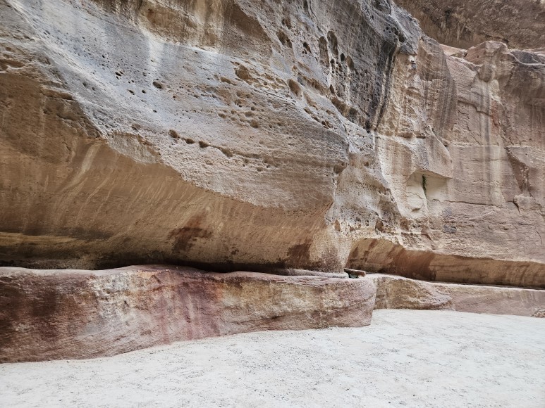 협곡을 걷다 보면 오래 전 나바테아인들이 만들어 사용했던 수로를 볼 수 있다. 암벽 아래 인공적으로 만든 깊게 파인 자국이 보이는데 아마도 저 사이 공간으로 물이 흘러갔나 보다. 이 황량한 암벽과 사막 속에 도시가 존재할 수 있었던 이유였다.