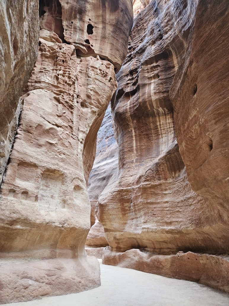 협곡 안으로 발을 딛는 순간 다른 차원의 세상으로 순간이동을 한 것 같았다. 거대하고 정교한 알 카즈네와 장엄하던 알 데이르를 처음 봤을 때도 감동받았지만, 시크 협곡에 들어서던 이 첫 느낌은 그 어떤 느낌과 비교할 수 없을 정도로 가슴 떨렸고 감동적이었기에 더 기억에 남는다.