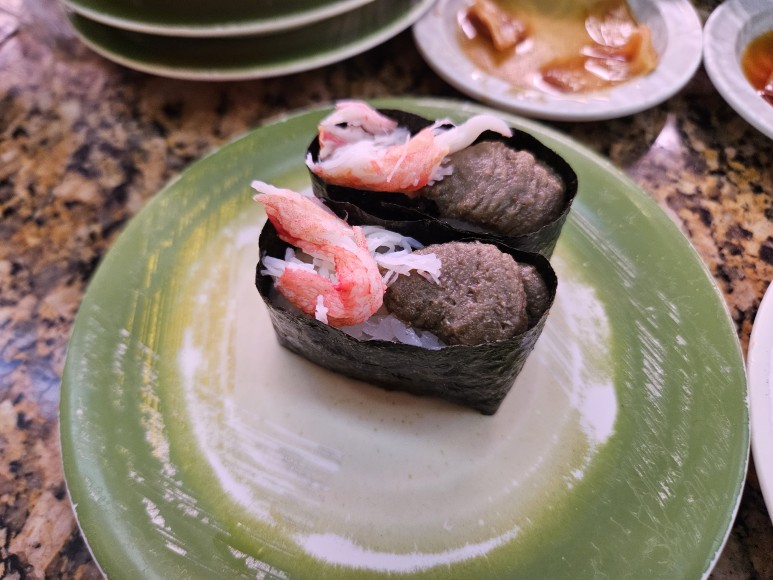 게 내장과 알 초밥 이건.. 만들어놓은것 같이 게 내장이 살짝 굳어있었는데 그래도 뭐 나쁘지 않았다. 다만 다음에는 다른거 시켜먹을것같은..