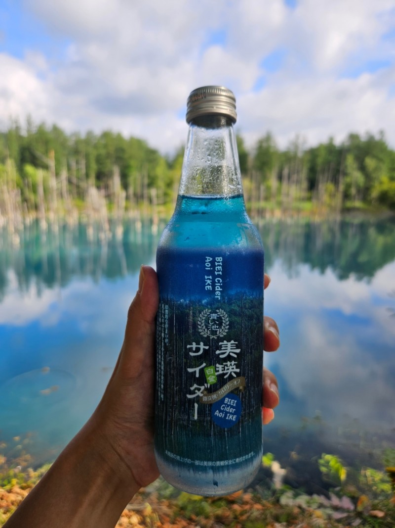 비에이에서 맛난 카레 돈가스와 우동을 먹고 호텔이 있는 아사히 다케 쪽으로 가려고 했다. 그런데 식당에서 청의호수 사이다를 마시다 보니, 청의호수를 보고 싶은 마음이 불쑥 들어서 마침 근처이길래 들렀다 가기로 했다.