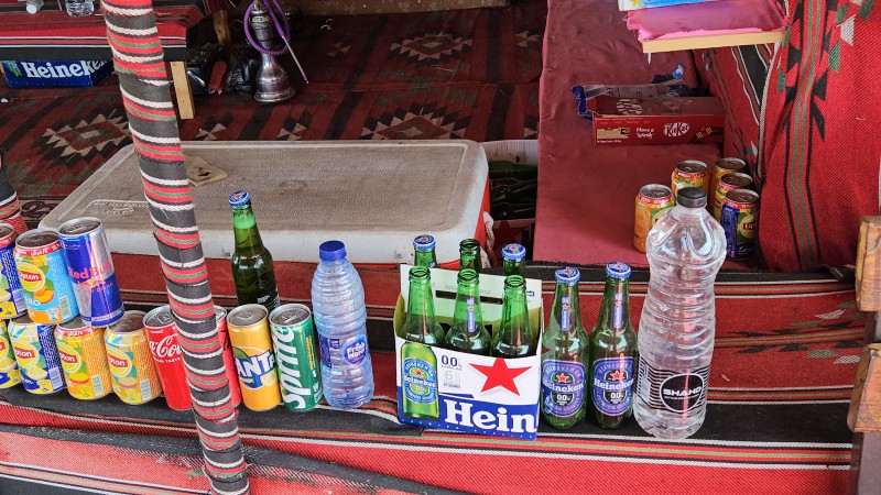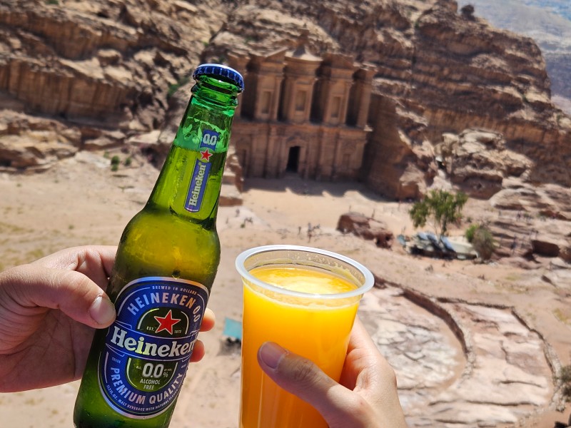 우린 오렌지 쥬스 한잔과 무알콜 하이네켄 한 병을 주문하고 뷰가 좋은 곳에 자리를 잡고 앉았다. 알코올이 땡겼으나 알코올을 팔지 않아서 마실 수가 없었다. 이슬람 국가인 요르단에서는 술이 아주 비쌌고 그마저도 찾기 어려웠다.