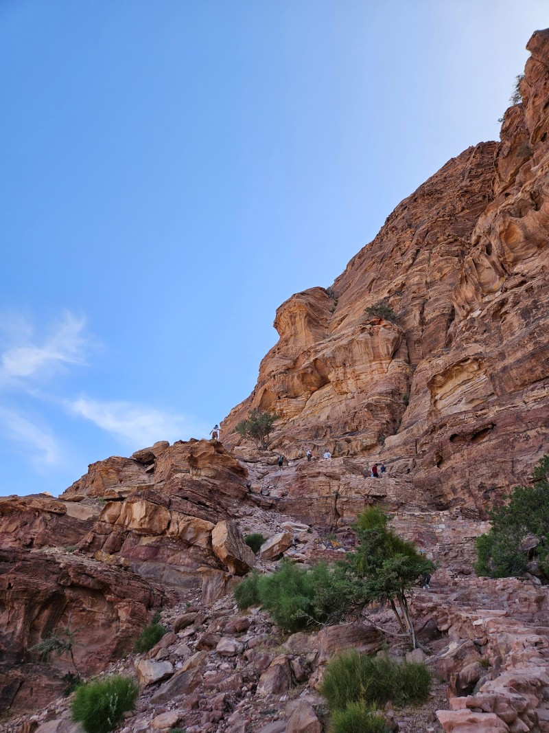 알 데이르로 가려면 페트라 메인 트레일을 따라 걷다가 800개가 넘는 계단을 오르는 방법이 하나 있고, 리틀 페트라로 통하는 길을 따라 가는 방법(보통 백도어 트레일이라 부른다)도 있다. 우리는 전날 체력 소비를 많이해서 조금이라도 덜 걸을 것 같은(?) 백도어 트레일을 통해 알 데이르까지 가기로 했다.