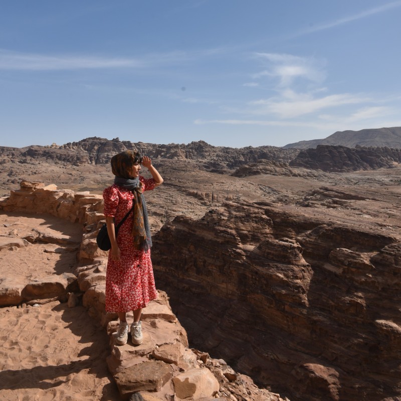 알 데이르 반대편은 온통 메마른 산이었다 거대하고 웅장했던 알 데이르가 작은 레고 장난감처럼 아주 작게 보였다. 한 손으로 쥐고 이리저리 옮길 수 있을 것처럼 작게 보였다. 반대편으로는 메마른 암산이 보였다. 우리가 걸어온 길들과 비슷하게 보였다.