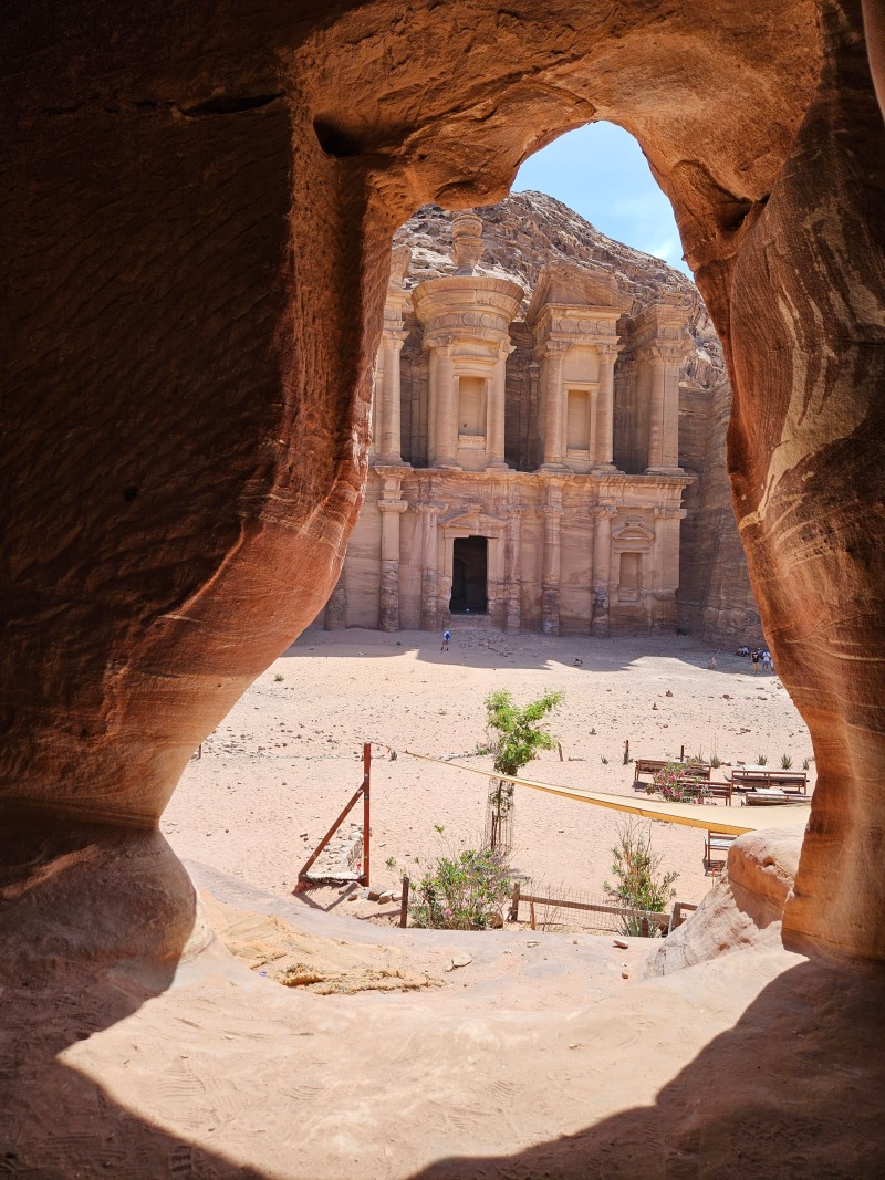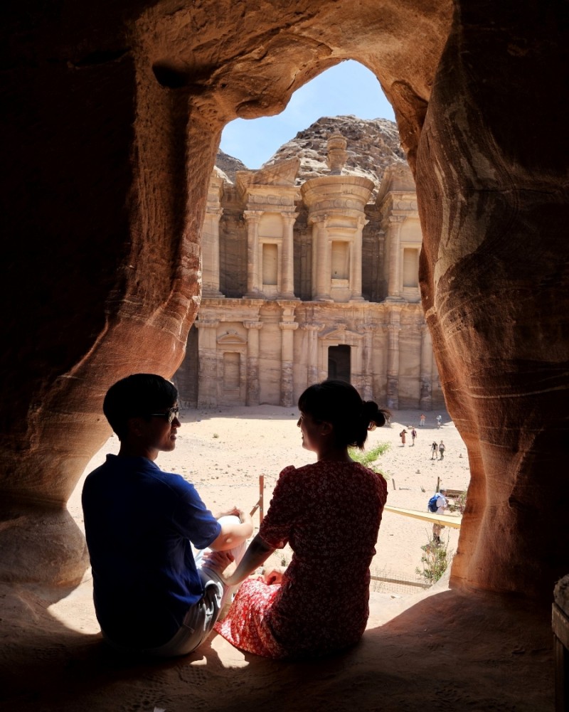 알 데이르가 보이는 어느 바위 동굴 같은 곳에서 기념 사진을 남겼다. 사람들이 많아서 꽤 기다렸다 사진을 찍게 되었다.