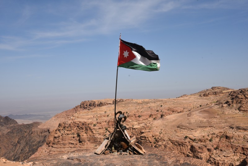 높은 산 위, 요르단 국기가 펄럭였다